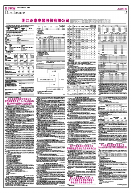 浙江正泰电器股份有限公司2009年年度报告摘要