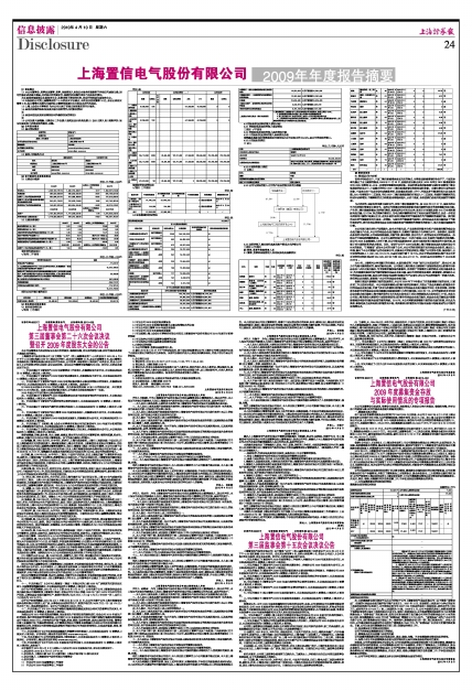 上海置信电气股份有限公司2009年年度报告摘要