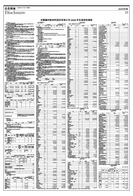 安徽鑫科新材料股份有限公司2009年年度报告摘要