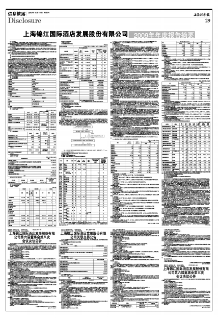 上海锦江国际酒店发展股份有限公司2009年年度报告摘要