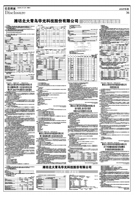 潍坊北大青鸟华光科技股份有限公司2009年年度报告摘要