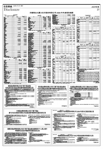 无锡商业大厦大东方股份有限公司2009年年度报告摘要