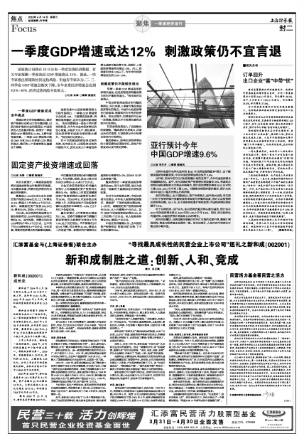 汇添富基金与《上海证券报》联合主办 “寻找最具成长性的民营企业上市公司”巡礼之新和成(002001)