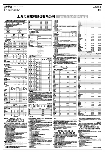 上海汇丽建材股份有限公司2009年年度报告摘要