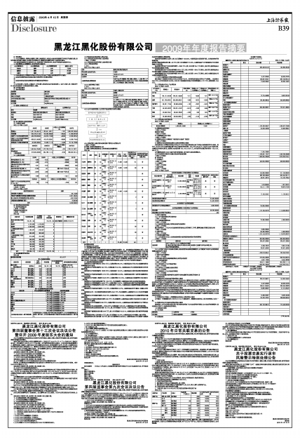 黑龙江黑化股份有限公司2009年年度报告摘要