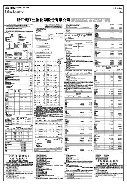 浙江钱江生物化学股份有限公司2009年年度报告摘要