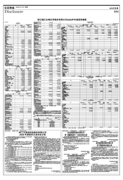 浙江钱江生物化学股份有限公司2009年年度报告摘要