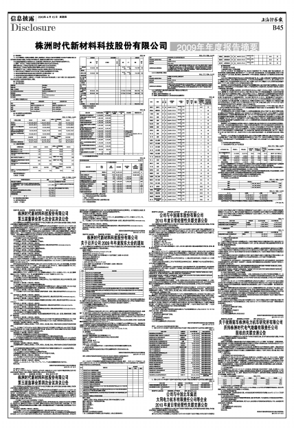株洲时代新材料科技股份有限公司2009年年度报告摘要
