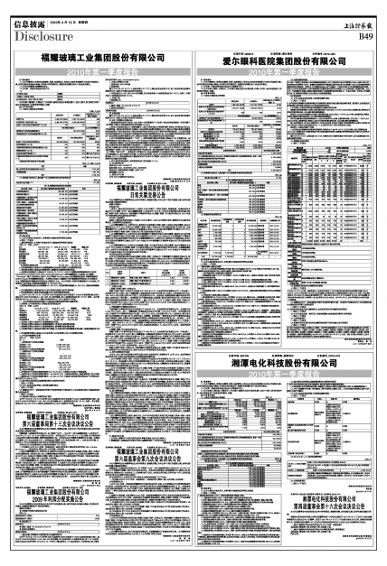 福耀玻璃工业集团股份有限公司2010年第一季度报告
