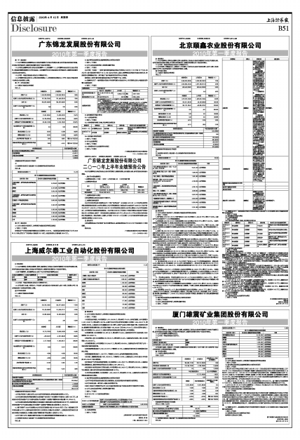 厦门雄震矿业集团股份有限公司2010年第一季度报告