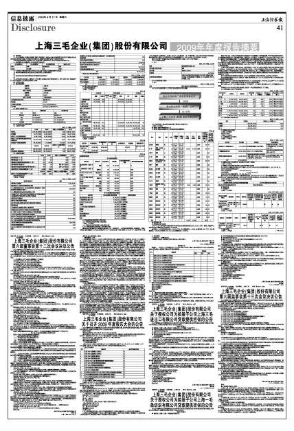 上海三毛企业(集团)股份有限公司2009年年度报告摘要