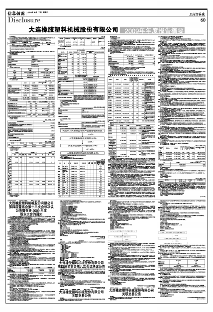 大连橡胶塑料机械股份有限公司2009年年度报告摘要