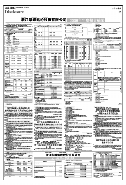 浙江华峰氨纶股份有限公司2009年年度报告摘要