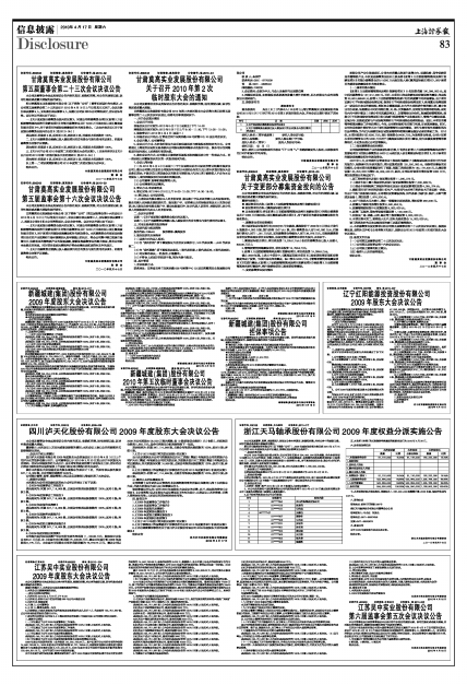四川泸天化股份有限公司2009年度股东大会决议公告