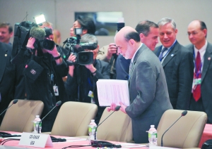 据G20参会人士透露,金融改革特别是向银行业征收新税的话题,将成为本次会议的重点讨论内容。此外,希腊债务危机的进展也引起了许多G20成员特别是发达国家的关注。而人民币汇率问题则不会是这次高官会的正式话题,不会在会议期间被公开讨论。图为美联储主席伯南克出席G20会议。 相关报道见6版
