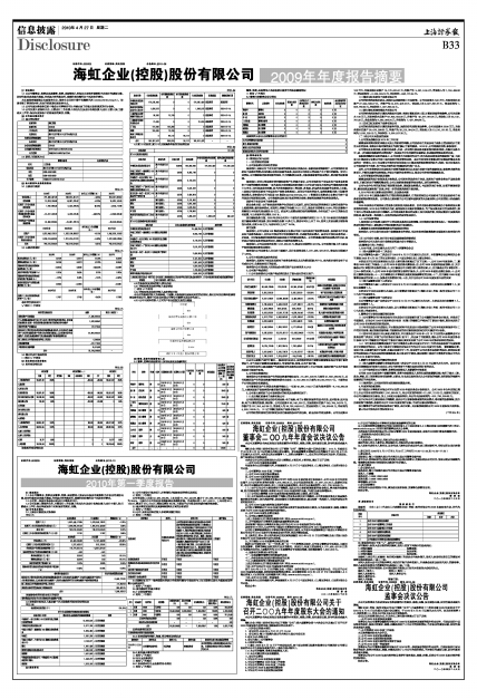 海虹企业(控股)股份有限公司2009年年度报告摘要