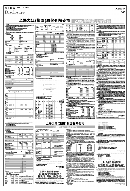 上海大江(集团)股份有限公司2009年年度报告摘要