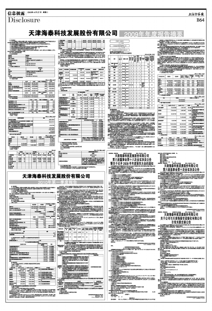 天津海泰科技发展股份有限公司2009年年度报告摘要
