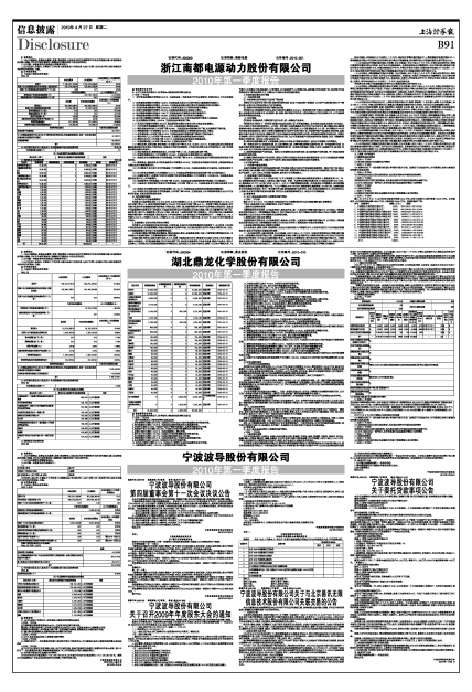 浙江南都电源动力股份有限公司2010年第一季度报告