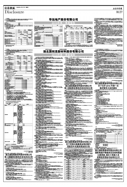 湖北国创高新材料股份有限公司2010年第一季度报告