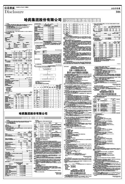证券代码:600664 证券简称:哈药股份 编号:临2010-004