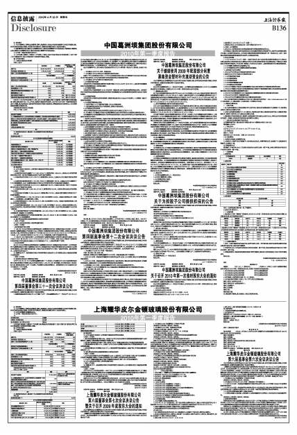 上海耀华皮尔金顿玻璃股份有限公司董事会