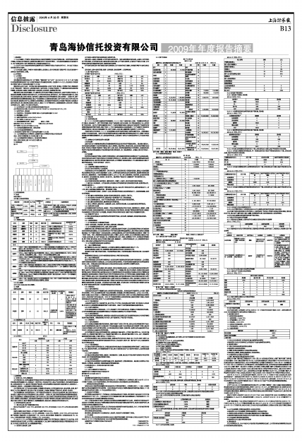 青岛海协信托投资有限公司2009年年度报告摘要