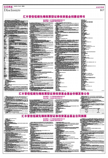 汇丰晋信低碳先锋股票型证券投资基金基金合同摘要