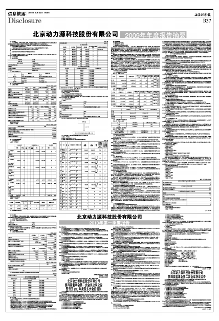 北京动力源科技股份有限公司2009年年度报告摘要