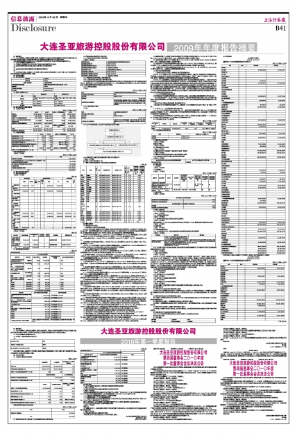 大连圣亚旅游控股股份有限公司2009年年度报告摘要
