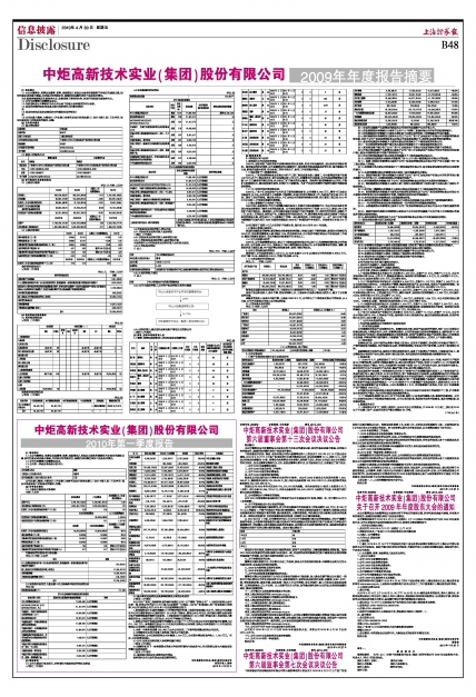 中炬高新技术实业(集团)股份有限公司2009年年度报告摘要