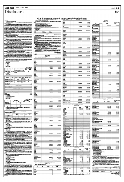 中垦农业资源开发股份有限公司2009年年度报告摘要