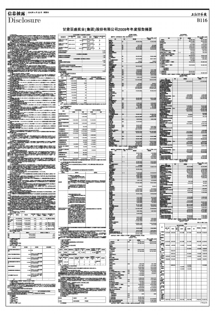 甘肃亚盛实业(集团)股份有限公司2009年年度报告摘要