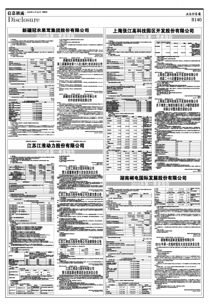 上海张江高科技园区开发股份有限公司2010年第一季度报告