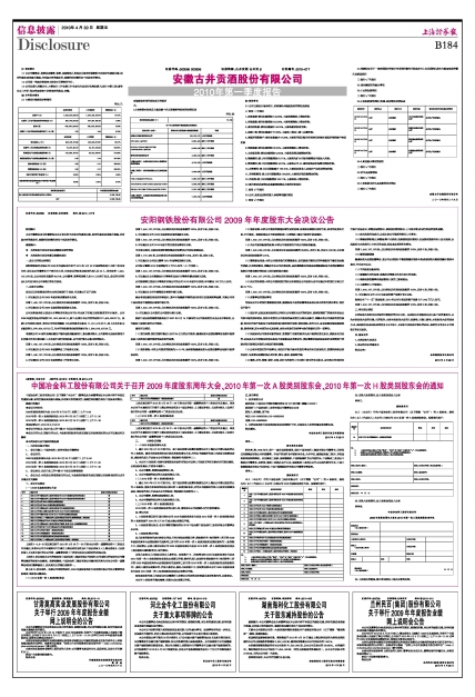 中国冶金科工股份有限公司关于召开2009年度股东周年大会、2010年第一次A股类别股东会、2010年第一次H股类别股东会的通知