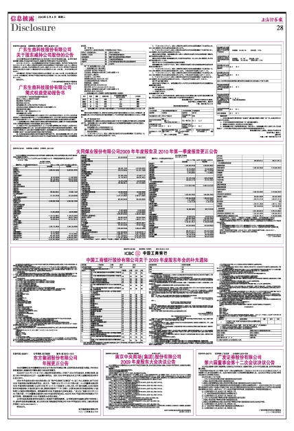 大同煤业股份有限公司2009年年度报告及2010年第一季度报告更正公告