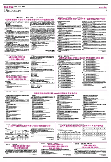华泰证券股份有限公司2009年度股东大会决议公告