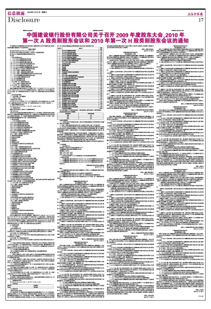 中国建设银行股份有限公司关于召开2009年度股东大会、2010年