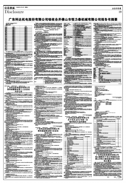 广东科达机电股份有限公司吸收合并佛山市恒力泰机械有限公司报告书摘要