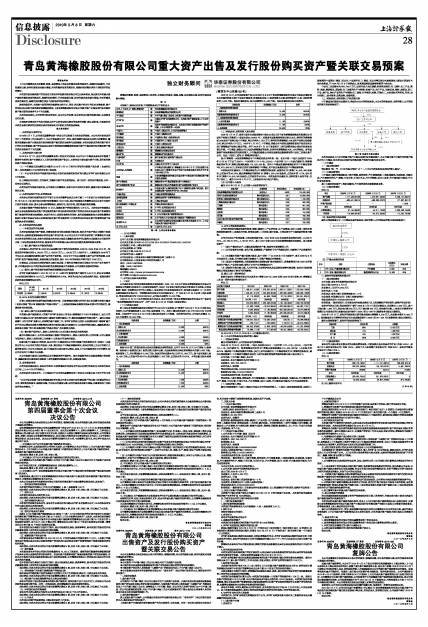 青岛黄海橡胶股份有限公司重大资产出售及发行股份购买资产暨关联交易预案
