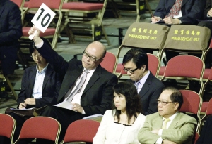 虽然本次土地拍卖得到了恒隆地产、新世界发展等多家地产大腕的捧场,但是拍卖场面却异常冷清,不仅以往地产商连环举手投标的场面不复存在,拍卖官还多次因无人出价警告可能收回土地,开拍进行了15分钟,仅有持6号牌的地产商、南丰发展及新世界发展参与竞投,到最后甚至演变成只有南丰一家唱独角戏。 相关报道详见封五 本报传真图