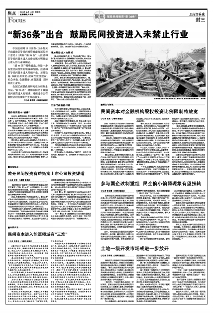 “新36条”出台 鼓励民间投资进入未禁止行业