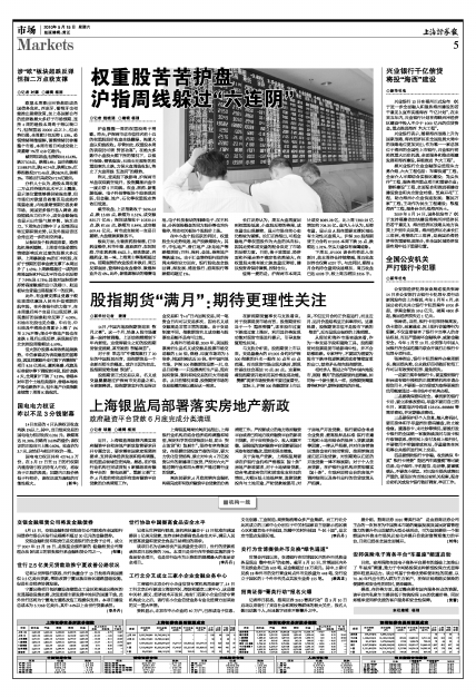 权重股苦苦护盘 沪指周线躲过“六连阴”