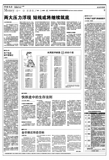 纽约商品交易所黄金价格周线图包括了一个倒头肩形态。第一个肩部在2009年12月形成,形态的头部在2010年2月形成,右肩在2010年3月形成。颈线使用了1159美元和1139美元的高点。当价格在2010年4月6日运行至颈线以上时,倒头肩形态被确认