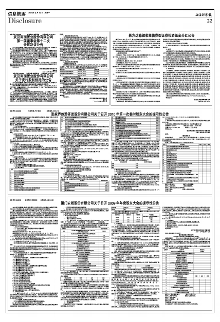 公司于2010年4月14日在《上海证券报》、《证券时报》、巨潮资讯网上刊登了公司《关于召开2010年第一次临时股东大会的通知》。为确保公司股东充分了解本次股东大会有关信息,现公司董事会发布本次股东大会提示性公告,详细内容如下: