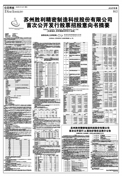苏州胜利精密制造科技股份有限公司首次公开发行股票招股意向书摘要