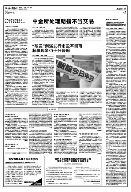 分析人士指出,破发现象是导致新股发行价走低的主要原因。近日新股连续出现破发,不仅次新股破发现象加剧,上市首日即跌破发行价的案例也接连不断。18日上市的4只中小板新股四维图新、多氟多、齐翔腾达、远东传动中,收盘除四维图新外,其他三只新股全部跌破发行价。市场网上网下打新收益率全面转负,令询价机构谨慎心态上升,一方面参与申购的积极性降低,一方面投价过程中高报价现象减少,倒逼新股发行市盈率大幅走低。