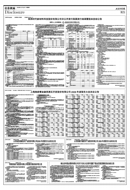 上海陆家嘴金融贸易区开发股份有限公司2009年度股东大会决议公告