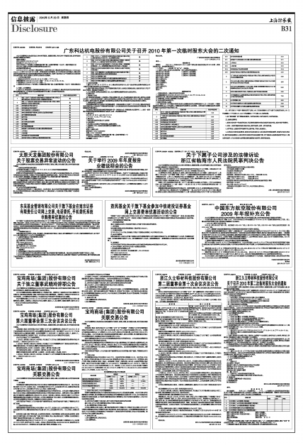 广东科达机电股份有限公司关于召开2010年第一次临时股东大会的二次通知