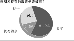 而从4月15日3168点开盘以来至今,大盘的调整幅度已经超过20%。如此不让人喘息的调整让多数股民的钱袋子缩水严重。而据本次上海证券报和新浪财经的联合调查显示:目前有超过六成受访者表示股票仍在套牢,而表示今年以来仍有盈余的投资者仅占到了12.3%,剩余受访者的账户盈亏持平。